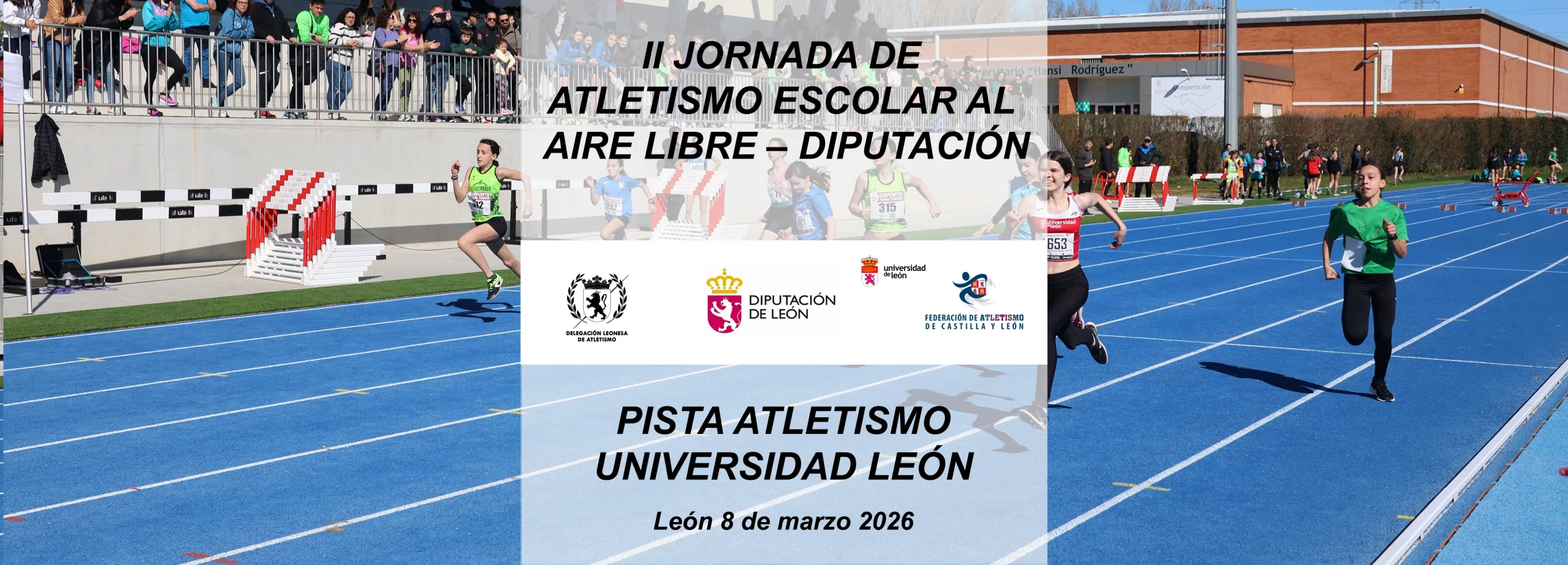 El domingo 8 de marzo de 2026 en las pistas de atletismo de la Universidad de León se celebra la II Jornada de atletismo escolar aire libre – Diputación de León.