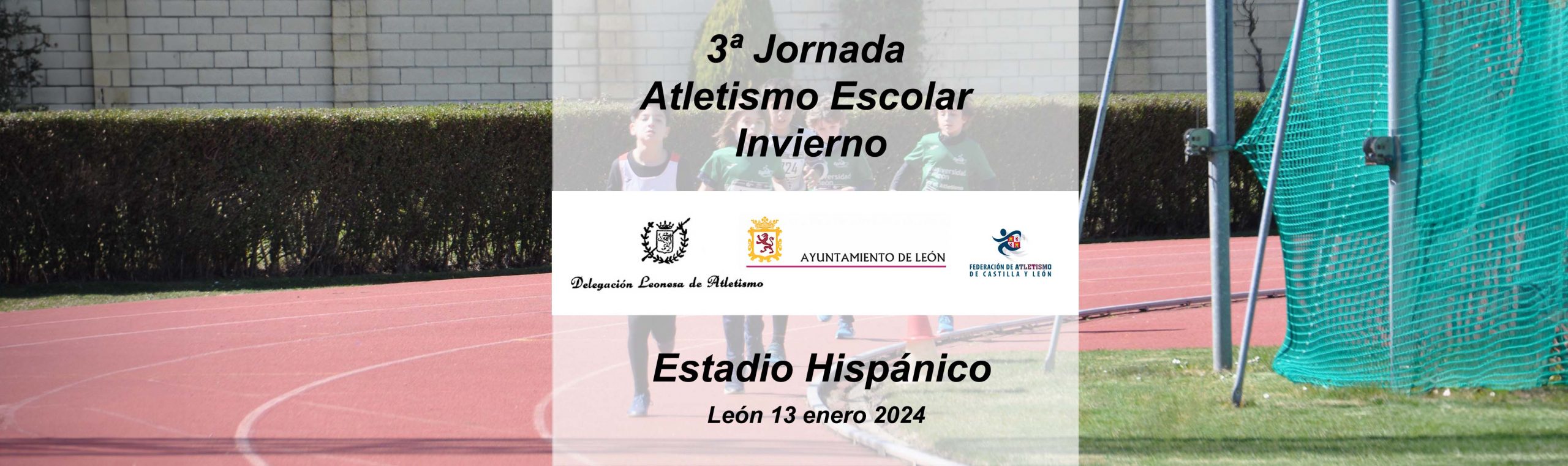 El sábado 13 de Enero de 2024 a partir de las 11:00 horas en las instalaciones del Estadio Hispánico de León se celebrará la 3ª Jornada Pista Invierno.