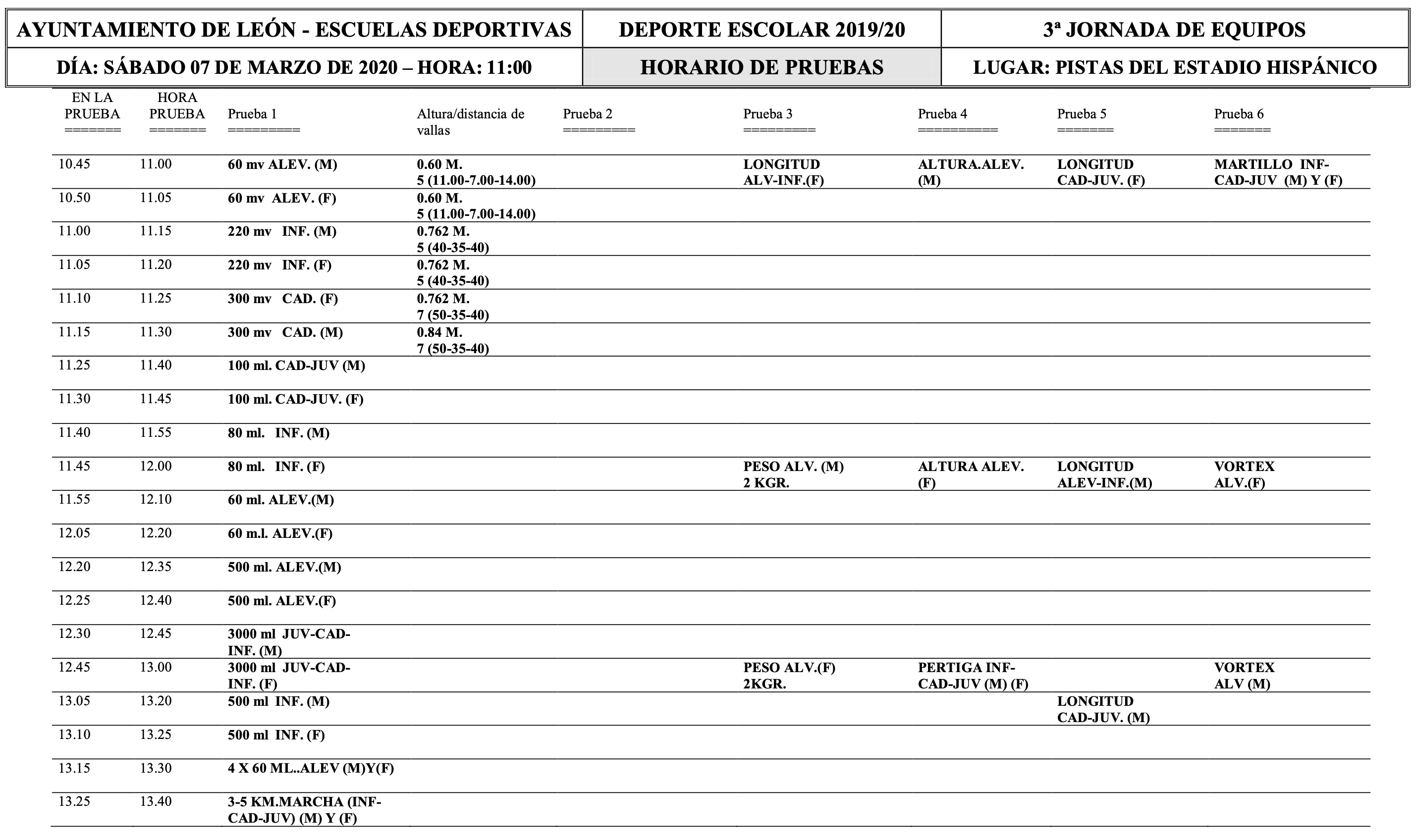 El  7 de marzo se celebró la tercera jornada individual y equipos escolar en el Estadio Hispánico de León en horario de mañana.