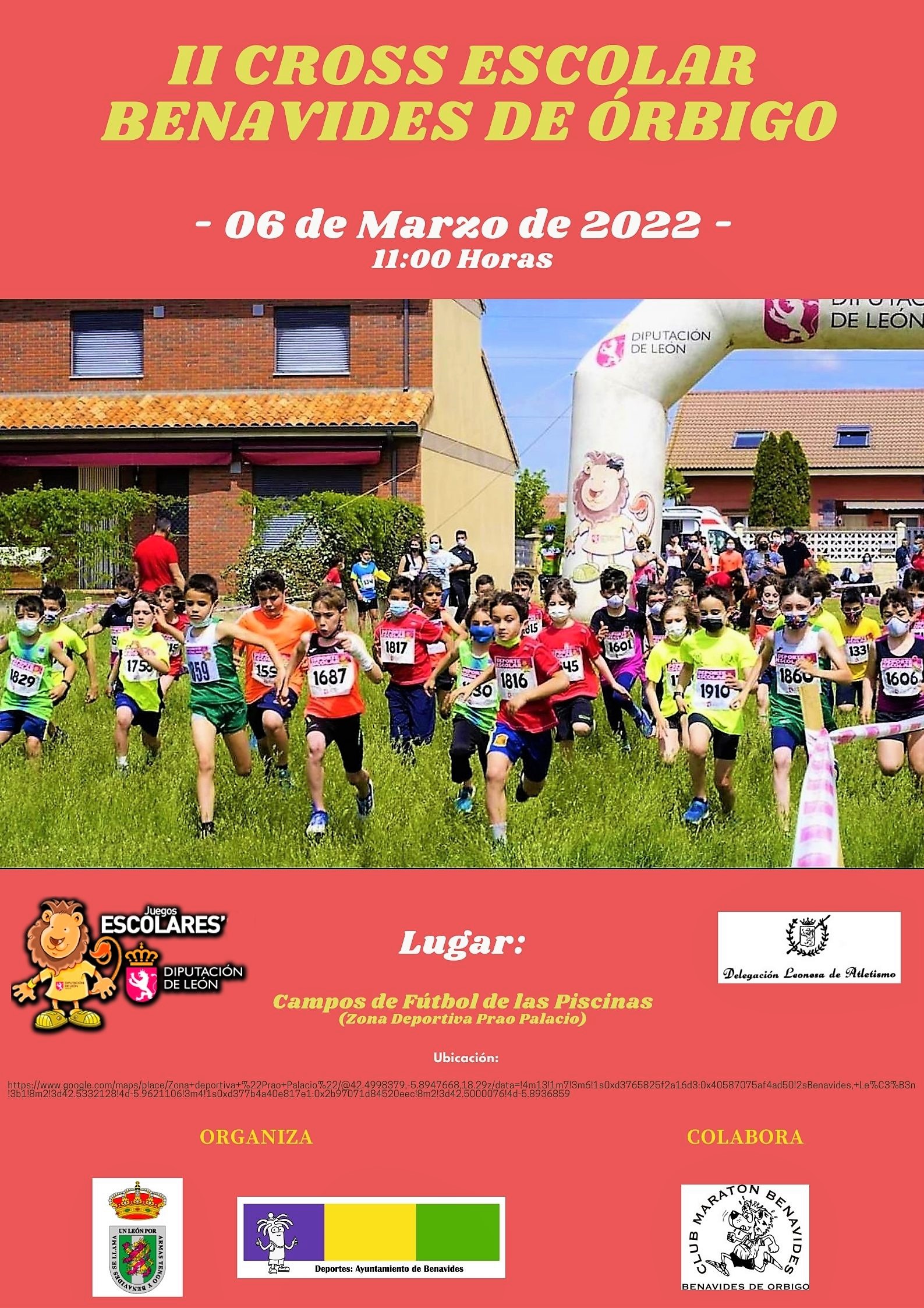 El 6 de marzo de 2022 se celebró la 4ª Jornada de Campo a Través en Benavides de Órbigo desde las 11:00 de la mañana y “Cross popular solidario” que dará comienzo justo antes (10:00 horas)