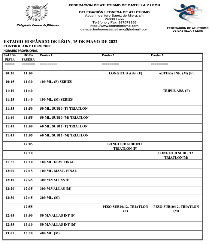 La Delegación Leonesa de Atletismo organiza un control de atletismo el 15 de mayo desde las 11:00 con la colaboración del Excmo. Ayuntamiento de León.