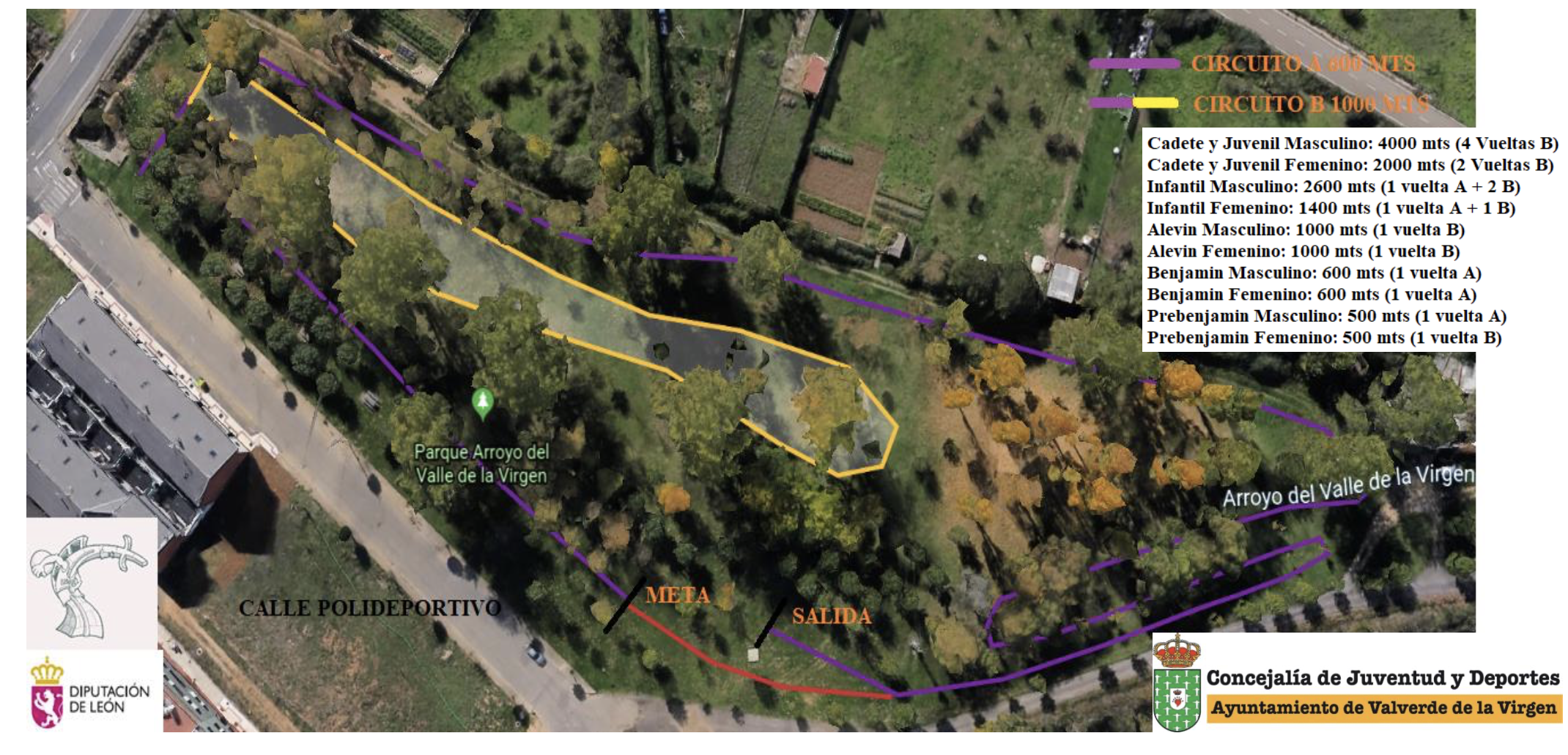 Las distancias para las diferentes categorías serán las establecidas en la normativa de campo a través para la presente temporada, especificando en el plano adjunto las distintas vueltas y número que deberán completar dichas categorías.