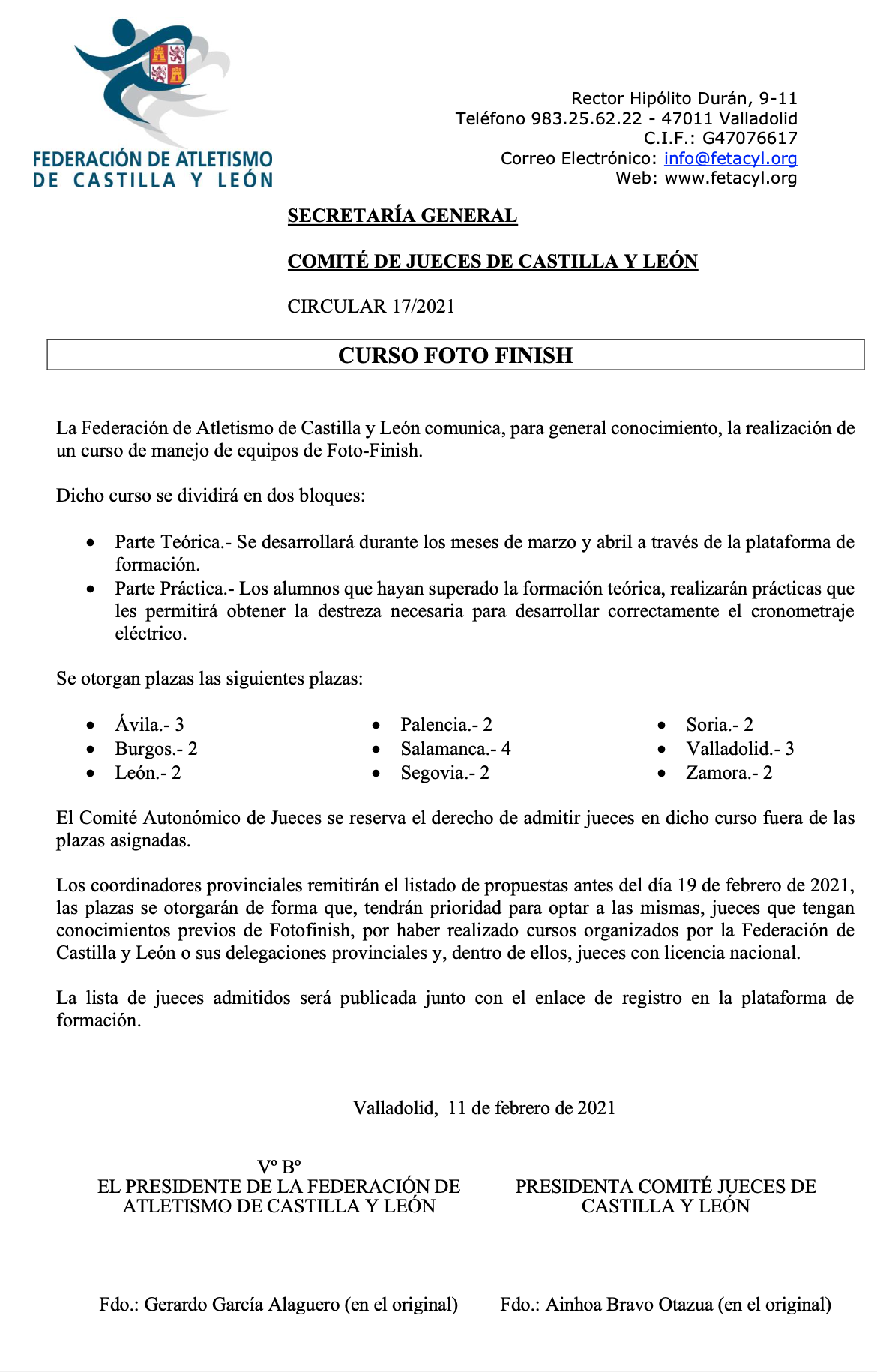 COMITÉ DE JUECES DE CASTILLA Y LEÓN CIRCULAR 17/2021