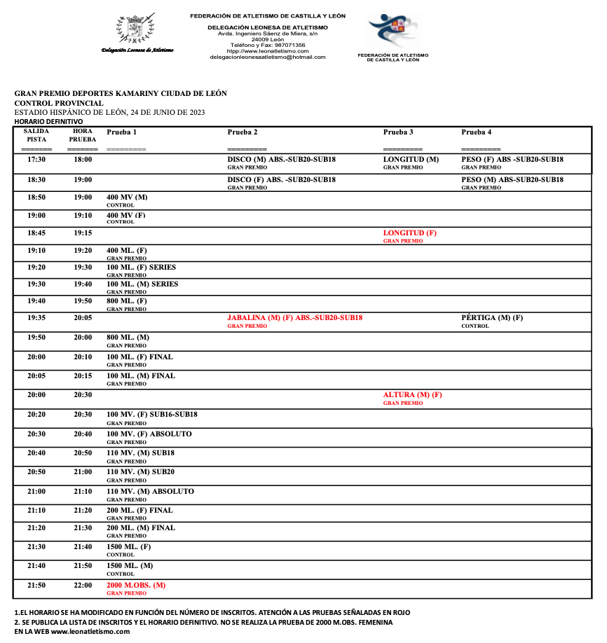 La Delegación Leonesa de Atletismo organiza la jornada Gran Premio y control de marcas con el patrocinio de la tienda de Deportes Kamariny y el Excmo. Ayuntamiento de León.