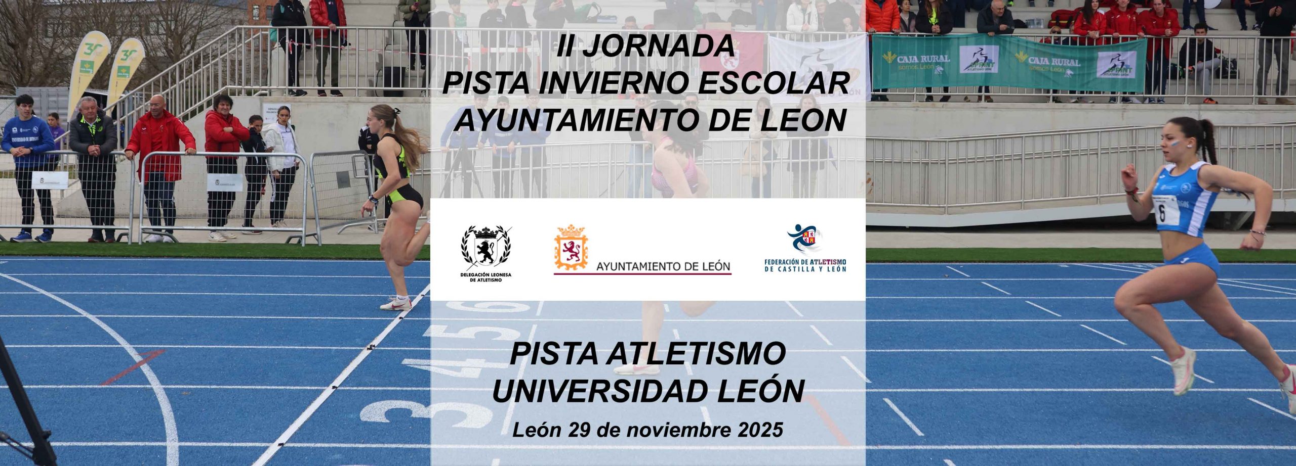El sábado 29 de noviembre de 2025 en las pistas de Atletismo de la Universidad de León se celebrará la II Jornada Pista Invierno Escolar Ayuntamiento de León.