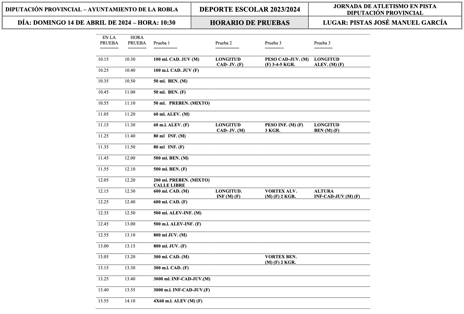 El domingo 14 de abril de 2024 desde las 10:30 en las instalaciones del Estadio de La Robla se celebrará una Jornada Escolar Aire Libre.