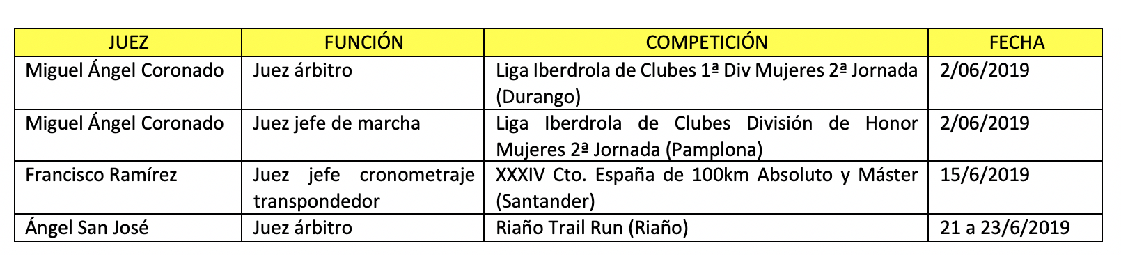 La RFEA ha publicado la circular con los nombramientos del Comité Nacional de Jueces de los responsables de las competiciones del calendario nacional correspondientes al mes de junio. Estos son los jueces leoneses designados: