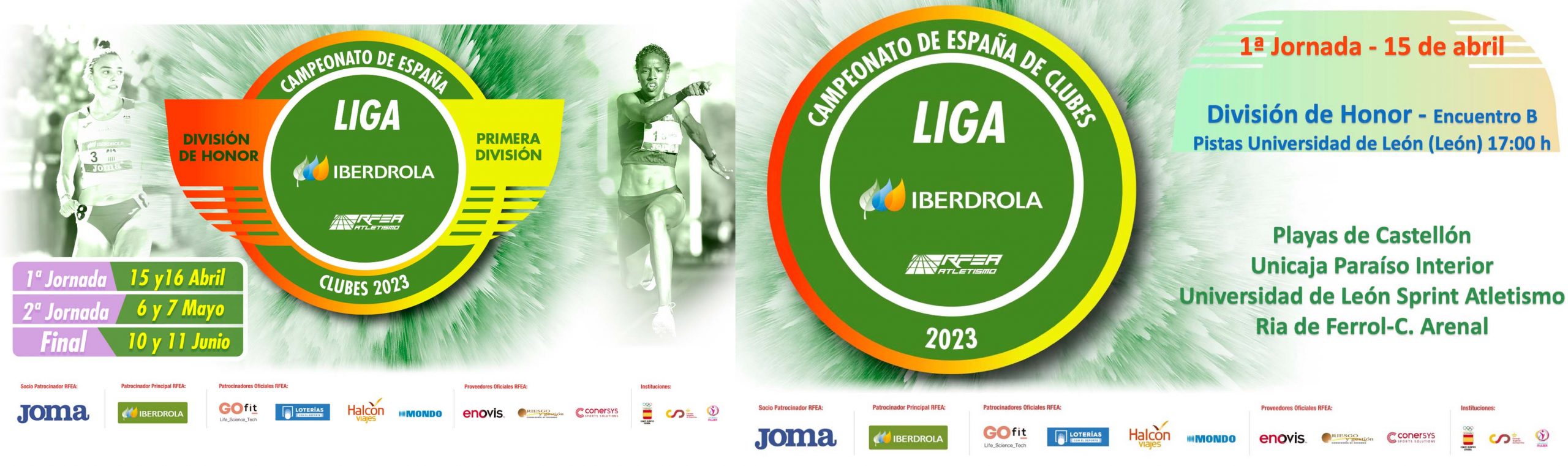 El próximo 15 abril desde las 17:00 en las pistas de atletismo de la Universidad de León tuvo lugar la primera jornada de la Liga Iberdrola de División de Honor femenina, lo que además supondrá la inauguración de estas pistas y la primera vez que León podrá ser sede de una jornada de la máxima división del atletismo español.
