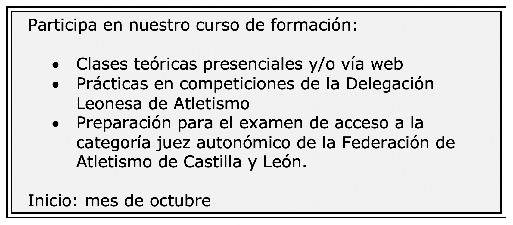 ¿QUIERES SER JUEZ DE ATLETISMO? septiembre 18, 2019septiembre 17, 2019 ¿TE GUSTA EL ATLETISMO?¿QUIERES COLABORAR CON NOSOTROS?¿QUIERES SER JUEZ DE ATLETISMO?Buscamos aficionados a este deporte que quieran colaborar con la Delegación Leonesa de Atletismo en el control de nuestras competiciones.Requisito: ser mayor de 16 años. Para más información ponte en contacto con nosotros en:comitedejueces@silvandelprado.es