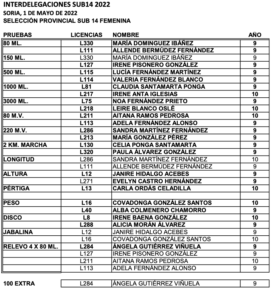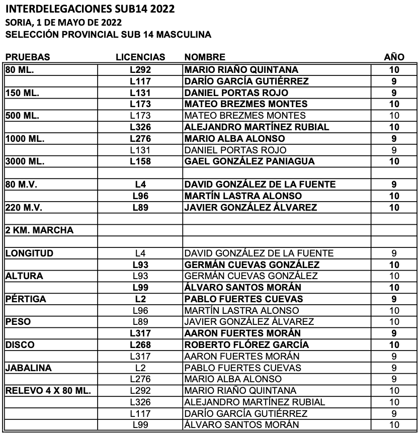 La Delegación de Atletismo de Soria, por delegación de la Federación de Atletismo de Castilla y León, organizó el XXIII Campeonato Autonómico de selecciones provinciales Sub 14, el día 1 de Mayo de 2022, en el estadio de “Los Pajaritos”, de Soria.